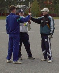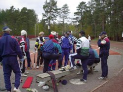 Pesäpallokausi 2002![]() Pelaajia superpesiksestä tällä hetkellä ja vuosien takaa, pelaajia ykköspesiksestä, pelaajia suomensarjasta vilisi Kestilän kentällä, kun ukkomiehet ja poikamiehet ottivat yhteen perinteisessä kauden päätöskamppailussa. Ukkomiehet olivat jälleen haalineet kasaan huippuporukan, oli Yrttiahon Harri, Tiikkajan Pasi, Puurusen Pertti, Rasinkankaan Marko, Suorsan Panu, Stillin Veli-Pekka, Tegelbergin Harri, Stillin Tapio, Suorsan Osmo, Stillin Timo ja Leiviskän Esko. Myös poikamiehet olivat saaneet vahvistuksia, pelissä oli mukana Pehkosen Vesa ja Holapan Jukka kesän ykkösjoukkueen lisäksi.Avausjakso oli tiivistä ulkopeliä puolin ja toisin, juoksuja ei saatu sitten millään. Ulkopeli oli tosi nautittavaa, ukkomiehistä erottui Suorsan Panu oivalla sijoittumisellaan ja Stillin Tapsa vaihtelevalla lukkaroinnillaan. Poikamiehistä näkyivät Piipon Teemu tolpillaan ja Roivaisen Hannu tehokkaalla etukenttätyöskentelyllään. Juoksuja ei vain erottunut. Toinen jakso alkoi räväkästi. Ukkomiehet aloittivat sisällä ja Tegelbergin Harri järjesti pystärillään Tiikkajan Pasin kotiin ja itsensä Pysäkkiin ja niin juoksujuhla alkoi. Tosin ukkomiehiltä se päättyi ensimmäisessä vuorossa yhteen, mutta poikamiehet intoutuivat vastaamaan. Tykki-Roivainen täräytti kakkosrajasta maisemiin ja Piipon veljekset juoksivat kotiin. Heti perään Niirasen Jaakko läppäsi Paulus Leinosen kotipesään ja päätteeksi Holapan Jukka näpäytti Hannun kotiin, alkoi uhkaavasti näyttää, että poikamiehet pesevät ukot.Kolmannessa vuorossa ukkomiehet näyttivät, etteivät he niin vain antaudu. Mane tälläsi kovaa keskelle ja koppareiden välistä pallo karkasi kauas. Tiikkajan Pasi toi tavallisen ja Mane kiersi kunnarin. Tuplajuoksun hän toi Pertti Puurusen lyönnillä ja tilanne oli tasan. Poikaset vastasivat tasoittavallaan. Paulus räppäsi upeasti kakkospuolelta läpi ja kiersi kunnarin. Edellä Pehkosen Vesa toi tavallisen. Jatkoa seurasi. Tykki-Roivainen sivalsi Pauluksen kotiin ja Mika Lämsä järjesteli Jokisaaren Tumpin kotipesään numeroiksi 8-4. Neljännen alussa ukkomiehet pyristelivät vielä kahden juoksun arvoisesti. Mane iski Pasin kotiin ja Pera juoksutti Panun tuomaan juoksun, mutta siihen homma sitten jäi. Poikamiehet kaappasivat pojan haltuunsa. Voitto jakson 1-0. Ukkomiesten parhaina palkittiin Rasinkankaan Mane ja Tiikkajan Pasi. Poikamiehistä pyttykerho muisti Piipon Teemua ja Leinosen Paulusta. Kausi on nyt paketissa ja hyvä kausi olikin, vaikka sarjanousu jäi karvan verran auki. Nyt pelattu ukkomiesten ja poikamiesten välinen ottelu oli hyvä päätös kaudelle. Erityiskiitos ukkomiesten joukkueelle. Pelaajat haluavat tulla syksyiseen koitokseen kaukaakin. Monilla on raskas sarjakausi takanaan, mutta siitä huolimatta he haluavat esiintyä Kestilän kentällä, kentällä, jossa he ovat pesisoppinsa saaneet ja ensituntuman pallon pelaamiseen. Hatunnosto myös niille pelaajille, joiden ainut peli koko kauden aikana on tämä perinteinen ottelu. Jotkut tulevat peliin tosi kaukaa, esimerkiksi Suorsan Oke, joka tulee kaukaa Hämeestä pelaamaan perinteistä ottelua. Se vaatii erityisharrastusta.Jouko Piippo 28.9.2002 ps. Lisää kuvia pelistä sunnuntaina -ylläpito |